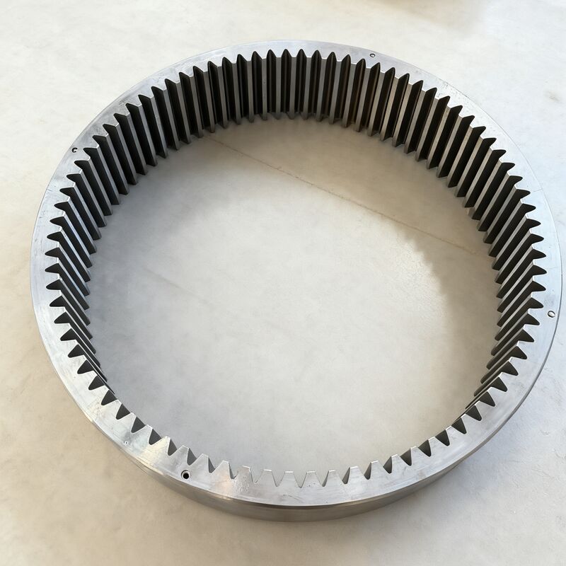 建設機械のローダーギアボックス(高トルクを伝達する内歯車)、鉱山機械のボールミル駆動システム(高負荷・低速運転に適した内歯車)、大型船舶推進システムの減速機構、冶金設備(例:圧延機の補助駆動ギア)、大型トラックの駆動アクスル伝達部品など、高負荷を受ける重機に適しています。
